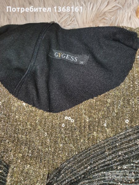 Златиста, много официална рокля. Обличана два пъти. В перфектно състояние. Дължина на цялата рокля 90 см.