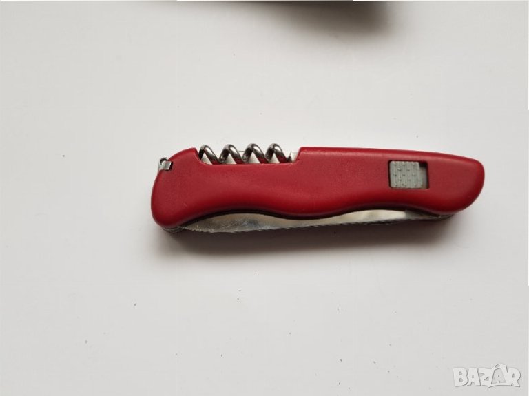 Ножчето разполага с голямо острие, което е здраво, остро и се заключва на място, така че е допълнително сигурно и се отключва лесно с уникалния си механизъм за плъзгащо заключване. Заедно със стандартната клечка за зъби и пинсети има и тирбушон.В добро състояние.