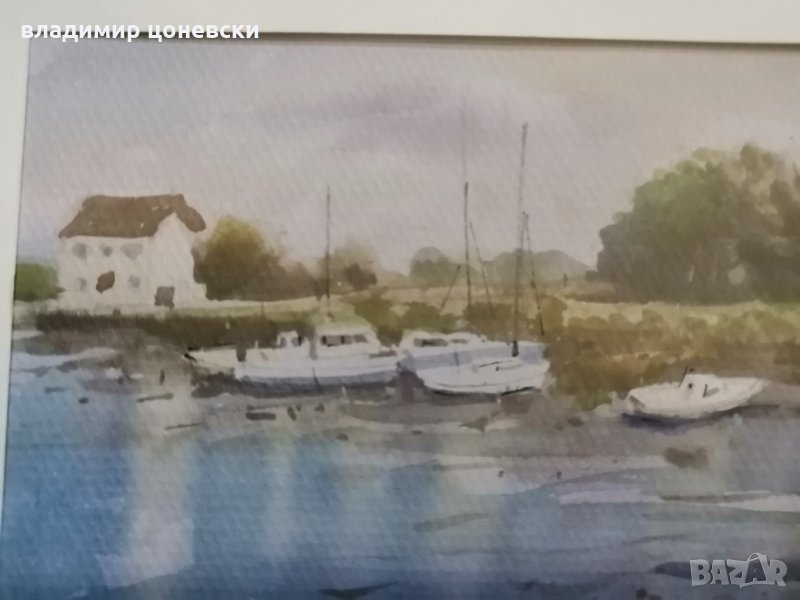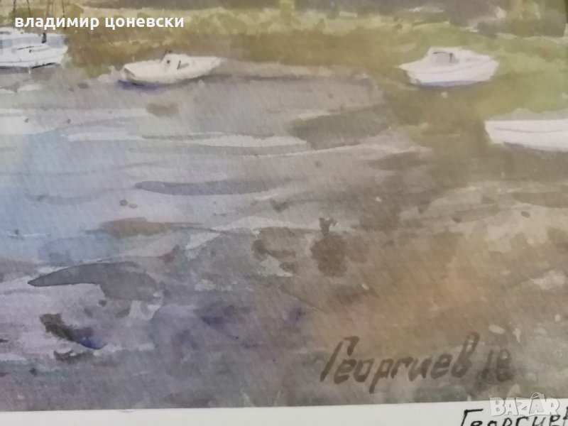 Акварел Пристан, художник Георгиев, подписан, размер с рамката 30/40см