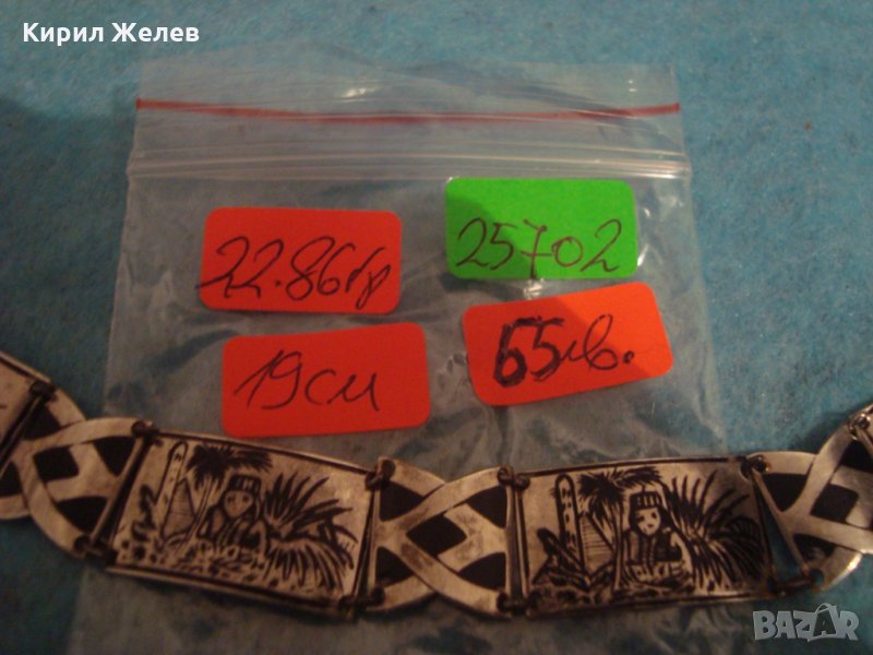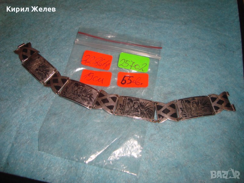 СТРАНА на ПРОИЗХОД - КРАЛСТВО МАРОКО. ХАЛКИЧКИТЕ, с КОИТО са СЪЕДИНЕНИ ОТДЕЛНИТЕ ПЛОЧКИ са СТОМАНЕНИ за ПО-ГОЛЯМА ЗДРАВИНА! Пускам ГОЛЯМА СЕРИЯ от най-разнообразни СРЕБЪРНИ БИЖУТА - украшения, кръстчета, медальони, пръстени, обеци, колиета, брошки, гривни, гердани и други най-различни; повечето са от СРЕБРО , има и няколко посребрени, позлатени, бронзови, медни, неръждаема стомана, САЧАН , и други подобни ювелирни материали и изделия, както и много от тях са инкрустирани със скъпоценни или полускъпоценни камъни. Има много нови, както и старинни, ретро, арт, ръчна изработка, ВЪЗРОЖДЕНСКИ и други колекционерски интересни неща. Някои са подходящи и за хенд-мейд материал. Почти всички са в отлично състояние, снимките ги ОНАГЛЕДЯВАТ! Изпращам по Еконт и Спиди винаги с Опция Преглед и Тест и Отстъпка-транспорт.