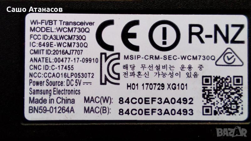 Wi-Fi/BT Transceiver : BN59-01264A / WCM730Q - 25лв.