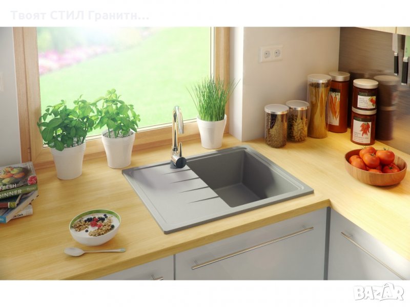 Кухненска мивка от Гранит модел Милано 620 x 500 mm сив