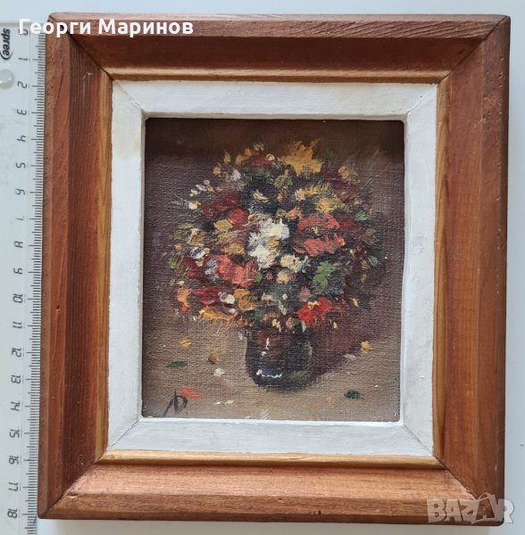 Картина, Ваза с цветя, маслени бои, Любомир Дойчев, 16 см Х 18 см → Обява 35861998