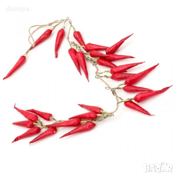 Размер – пълна дължина: 51см; дължина на една чушка с дръжката: 7см; дължина на чушката без дръжката: 5.5см