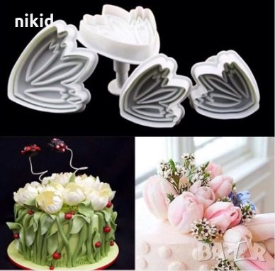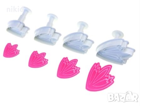 4 бр лале пластмасови резци резец форми форма с бутало за фондан тесто торта сладки декор → Обява 35872675