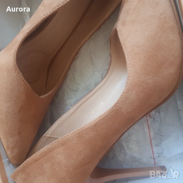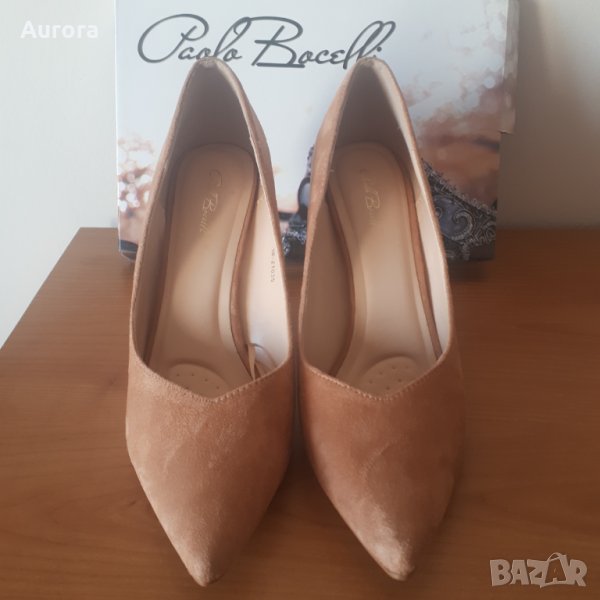 Чисто нови елегантни обувки с висок ток на известния бранд Paolo Botticelli. Пробвани само в магазина, купени за повод, но така и не ги обух. Вис. на тока отвън- 10.5 см. Изчистен стилен модел и цвят, подходящ както за официално събитие, така и за дънки.