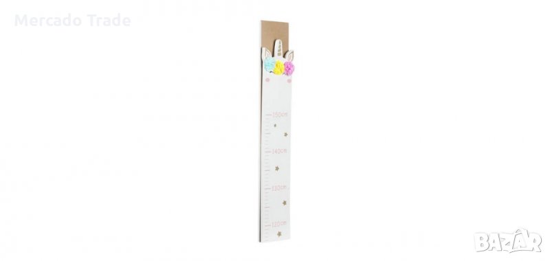 Дървен ръстомер с дизайн на еднорог.Поставете детския ръстомер (висомер - измервателна лента) на стената или където пожелаете от металната му кука и наблюдавайте развитието на ръста на вашето дете по забавен начин.