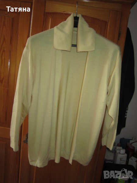 Снимка 14 НОВА бледожълта 100% вълна и кашмир.Може да се носи свободно като сако,а също и с подходящ аксесоар или колан за прихващане по тялото.Цена -20 € ; /70;96;52/см
