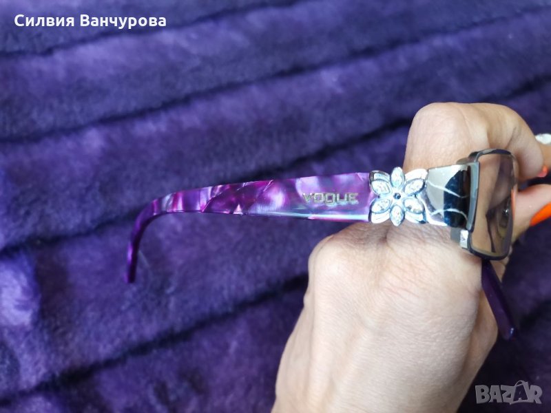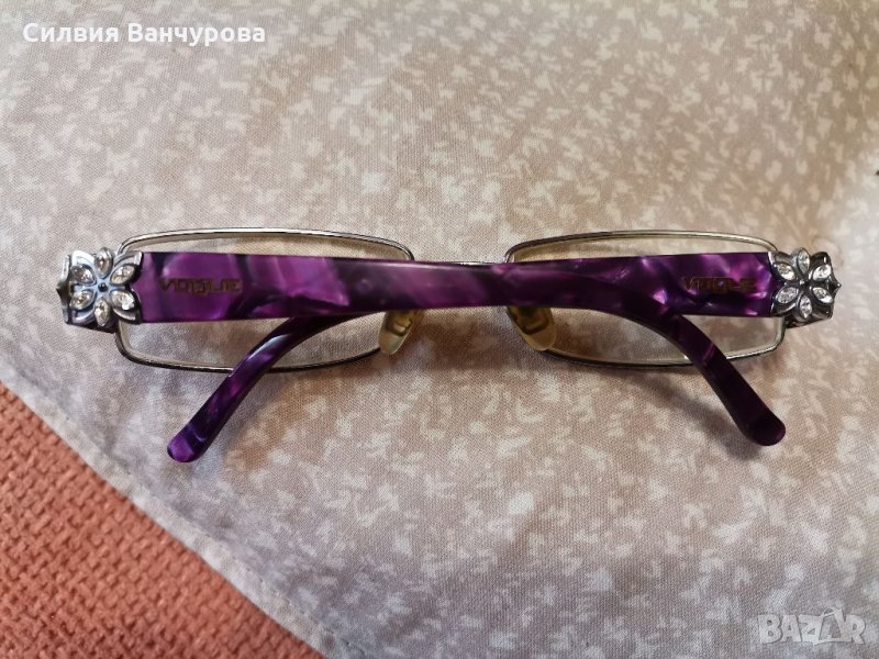 Оригинални диоптрични рамки Vogue с цветя с камъни Сваровски на дръжките. Не са носени никога, в момента са със стъкла с диоптър но немога да ви кажа точно колко е. Твърд кожен калъф. Уникален дизайн на дръжките с прозрачни и блестящи елементи