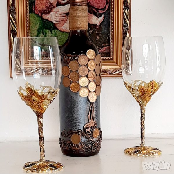 Авторски комплект от книга - икона с оригинално пожелание за всякакъв персонален или семеен повод в съчетание с бутилка /пълна/ Дървото на живота с истински монети или икона на Исус.