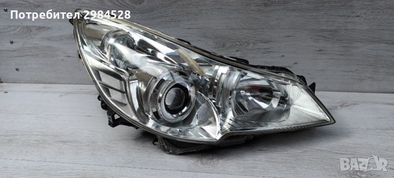 Оригинален десен фар за Subaru Legacy / Outback - Ксенонов, дребна козметична забележка във външния горен ръб на стъклото (снимка 6), но не пропуска вода или прах. Едно счупено ухо (захват). Необорудван.