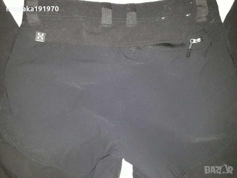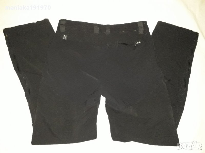 Оригинални дамски хибридни (трекинг) панталони Haglofs climatic. Размер 38 (М). Два предни,два странични и един заден джоба с ципове .Регулируеми на глезените,цип на 30 см от края ня крачолите . Туристически, анатомично оформен панталон от много здрава материя от полиестер и памук, със стреч зони отпред на крачолите и седалището.Цвят - наситено тъмно черно ,като на първите снимки.В отлично състояние!