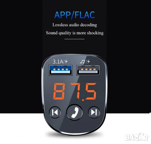 Car Bluetooth който може да се използва в автомобил за провеждане на телефонни разговори и/или за слушане на музика от телефона на аудиосистемата в колата.