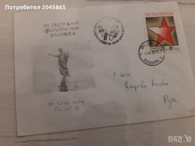 Вторият пощенски плик е 1975 година, с пощенска марка и щемпел 3-та окръжна филателна изложба - град Русе.