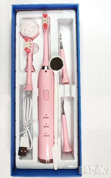 Електрическа четка за зъби с 5 накрайника и ултразвук за зъбен камък и зъбна плака , снимка 1 - Други инструменти - 35882032 Електрическа четка за зъби с 5 накрайника и ултразвук за зъбен камък и зъбна плака , снимка 2 - Други инструменти - 35882032 Електрическа четка за зъби с 5 накрайника и ултразвук за зъбен камък и зъбна плака , снимка 3 - Други инструменти - 35882032 Електрическа четка за зъби с 5 накрайника и ултразвук за зъбен камък и зъбна плака , снимка 4 - Други инструменти - 35882032 1/4