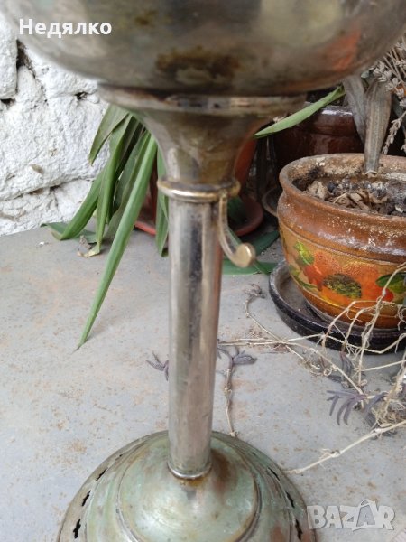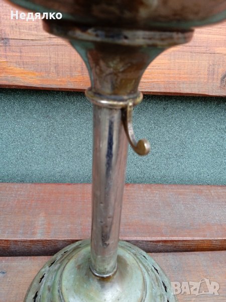 Рядка,оригинална австрийска газена лампа ,асансьорна,разтегателна,една от най-добрите марки, на братя Брюнер,в отлично за годините си работещо състояние,тествана,видно от снимките.Всичко по нея си е оригинал,без стъклото,руско е ,старо,но отлично пасва на лампата,материала е хромиран бронз,само отдолу в основата има железен обръч,видно.Врътката е с логото на марката върху черен оникс,отстрани се застопорява с малко лостче,за избрана височина,разпъната е 57 см,не - 43,5 със стъклото,само лампа- 28 см,диаметър в средата- 19 см,в основата- 14,7 см.
