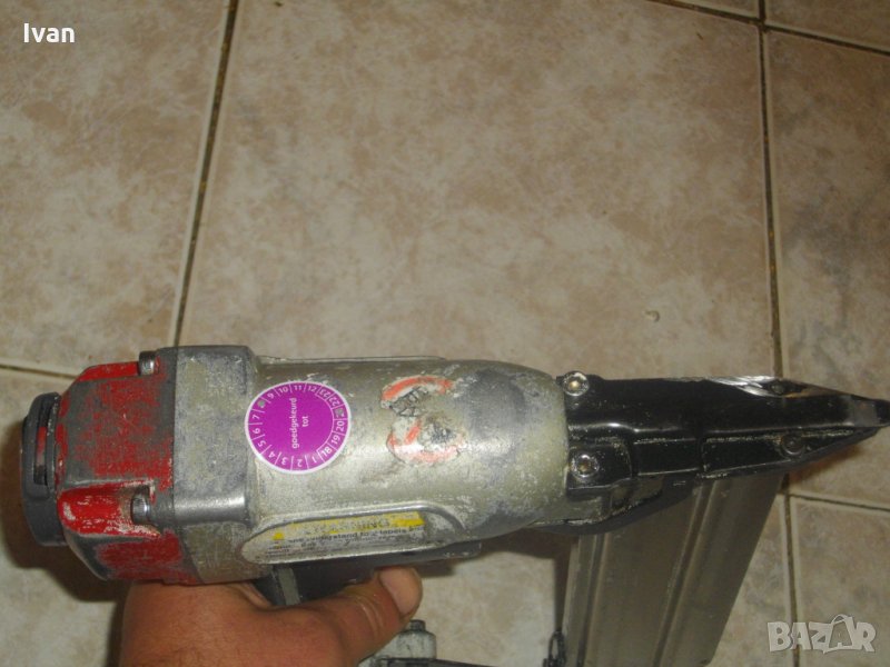 Много голям пневматичен , масивен професионален тапицерски такер за пирони дърводелски с глава и без глава размер до 50 мм дължина.