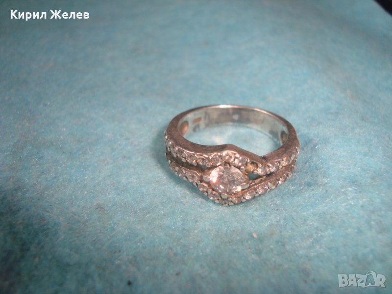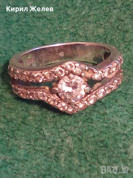 СТАР АНГЛИЙСКИ СКЪПОЦЕНЕН СРЕБЪРЕН АР НУВО ПРЪСТЕН СРЕБРО 925 с ФАСЕТИРАНИ ЦИРКОНИ 25836