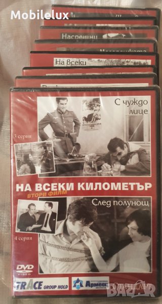 Чисто нови DVD дискове с култовият филм "На всеки километър" .Липсват диск 7 и 8 само. Диск 5 са 2 броя.Продават се комплект само.