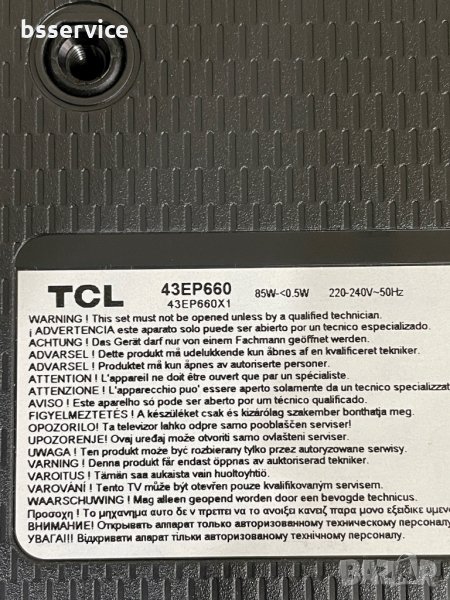 Телевизор TCL 43EP660 / 40-RT51T1-MAB2HG / 08-L12NHA2-PW210AA, снимка 1 - Части и Платки - 35887833 Телевизор TCL 43EP660 / 40-RT51T1-MAB2HG / 08-L12NHA2-PW210AA, снимка 2 - Части и Платки - 35887833 Телевизор TCL 43EP660 / 40-RT51T1-MAB2HG / 08-L12NHA2-PW210AA, снимка 3 - Части и Платки - 35887833 Телевизор TCL 43EP660 / 40-RT51T1-MAB2HG / 08-L12NHA2-PW210AA, снимка 4 - Части и Платки - 35887833 Телевизор TCL 43EP660 / 40-RT51T1-MAB2HG / 08-L12NHA2-PW210AA, снимка 5 - Части и Платки - 35887833 Телевизор TCL 43EP660 / 40-RT51T1-MAB2HG / 08-L12NHA2-PW210AA, снимка 6 - Части и Платки - 35887833 Телевизор TCL 43EP660 / 40-RT51T1-MAB2HG / 08-L12NHA2-PW210AA, снимка 7 - Части и Платки - 35887833 1/7