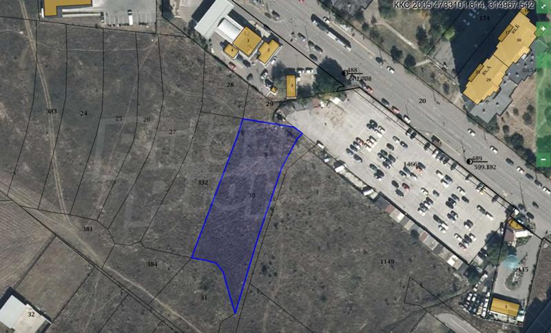 Имотът е с площ 2604 кв. м., налични ток и вода. Попада в зона за обществено и жилищно строителство със следните параметри: