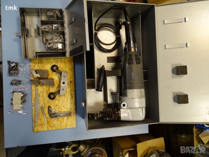 Предлагаме леко употребявана, в отлично състояние и запазени технически параметри, швейцарска ръчна щанц машина за окрайчване, скосяване под ъгъл 45 °,30 ° на метални листовe. Машината е произдводство на TRUMPF и е със следните параметри: