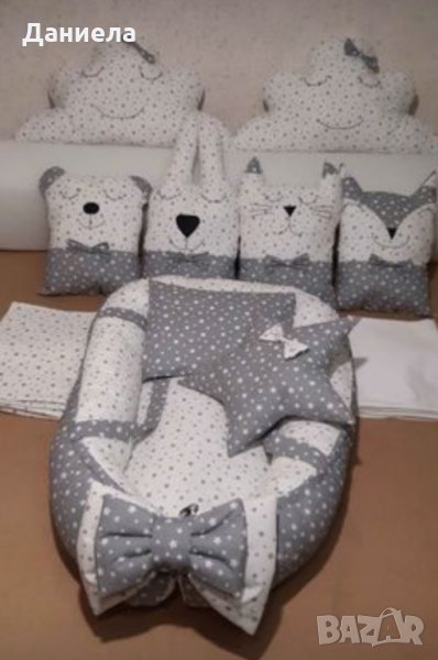 Изработвам по поръчка обиколници за бебешко креватче, декоративни възглавнички, бебешки гнезда, порт бебе, спални комплекти и др за бебето. Плат ранфорс, пълнеж силиконов пух.
