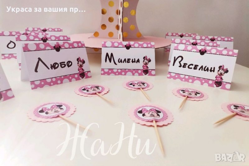 Украса За бебешка погача, рожден ден на тема Мини Маус → Обява 35899155