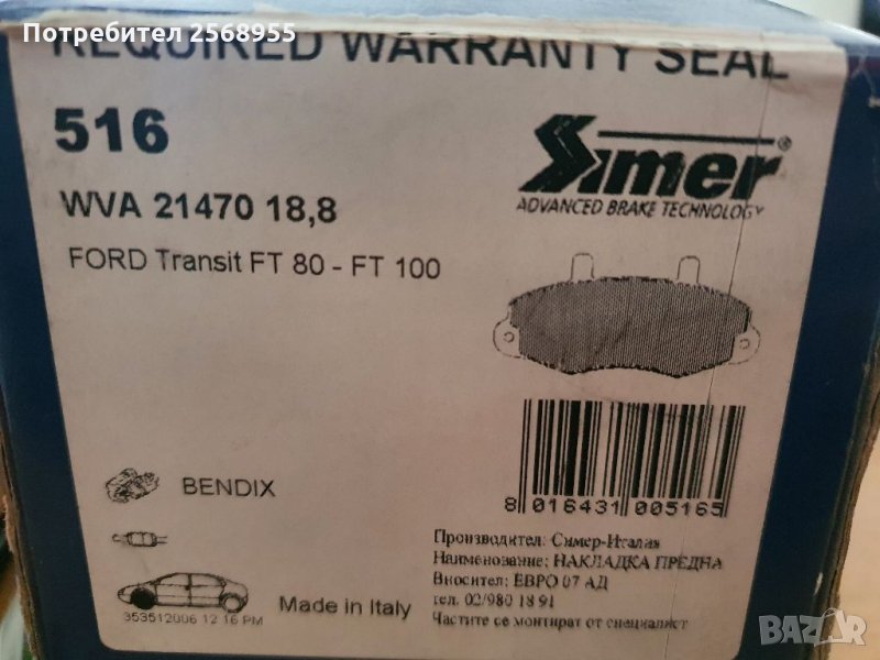 SIMBER 516 Накладки предни FORD Transit Mk3 Mk4 1985-2000 / OE 5028763 / OE 7018202 / OE 6197738 → Обява 35901069
