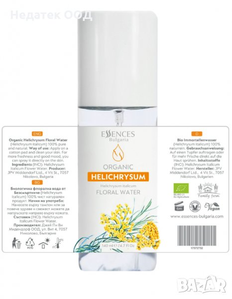 Био флорална вода Essences Bulgaria, Безсмъртниче, 140 мл