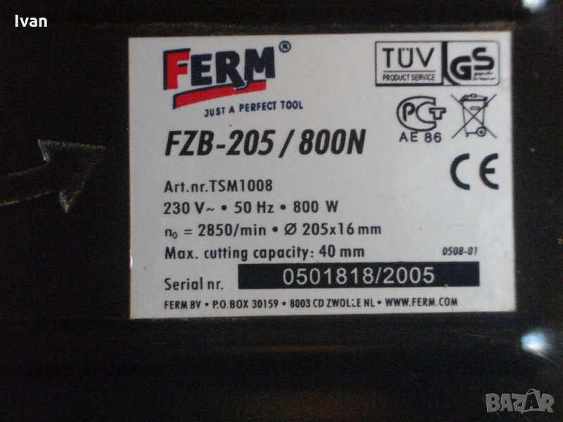 Марка модел на машината - .FERM FZB-205/800N