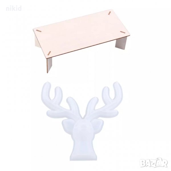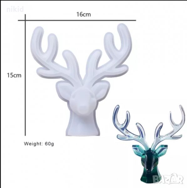3D голям елен с рога за закачване с дървена основа силиконов молд форма шоколад смола гипс бижута → Обява 35908513