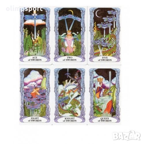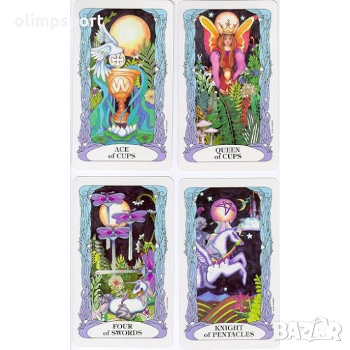 Таро Moon Garden издава своите мистериозни послания и тайни чрез крилете на змейове, пеперуди, ангели и феи. Еднорозите и делфините допълнително носят проницателни послания от много далечни земи. Тази светеща колекция сбира традиционната символика на таро, елементната магия и отразяващите фази на Луната.