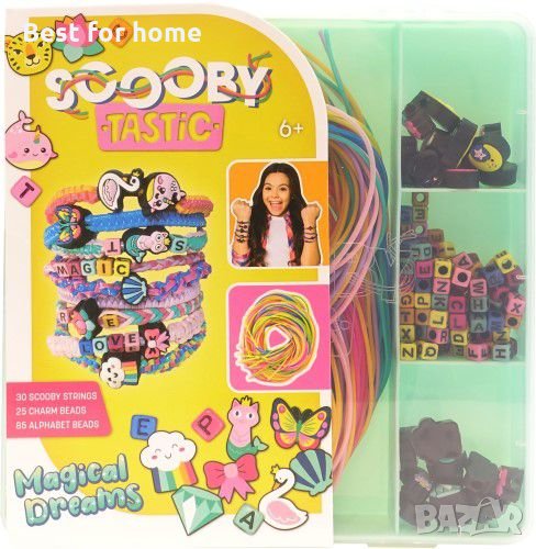 Съдържание: 30 цветни основи- силиконови корди Scooby Tastic с дължина 1 метър, 25 талисмана и 85 мъниста с азбука.