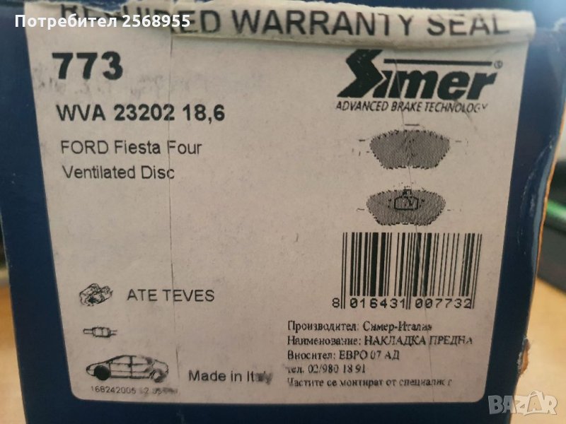SIMER 773 Накладки предни FORD Fiesta, Puma, KA, MAZDA 121, 2, 1995-2012 OE 1911169 OE DDY23328Z
