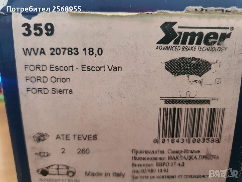 SIMER 359 Накладки предни FORD Sierra, Escort, Orion, Fiesta 1980-1997 OE 1030601 OE 1613128