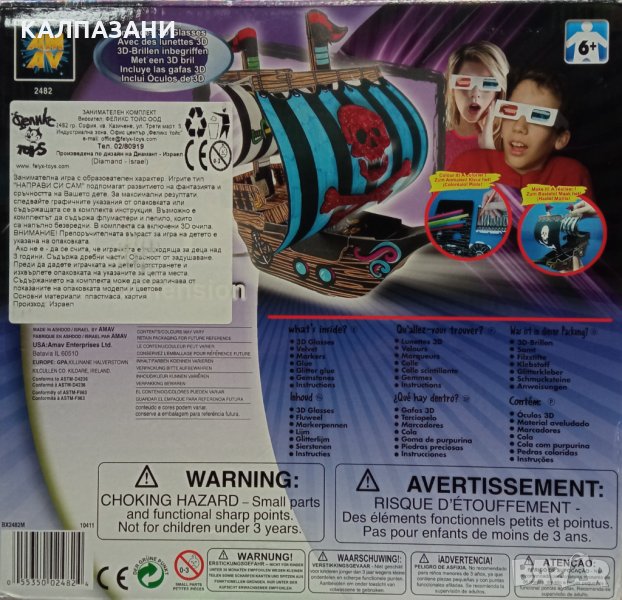 Подходящо за деца над 6 години. Сглоби и оцвети своя пиратски кораб, сложи 3D очилата и се пренеси в друго измерение. В комплекта са включени 3D очила и книжка на български език с инструкции.