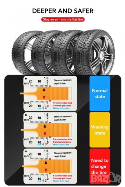 Дълбокомер за измерване грайфера на автомобилни гуми → Обява 35914143