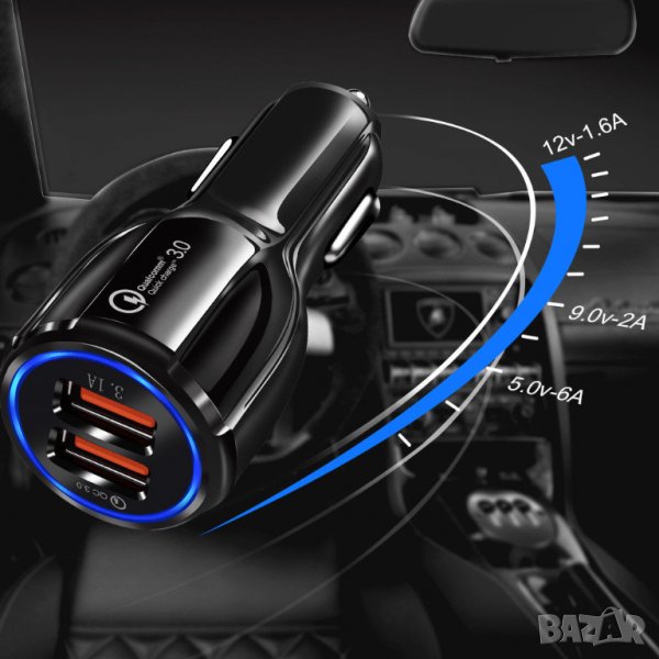 4.Двойно USB зарядно за кола с ( св.индикатор,защита и висока скорост ) - 10лв
