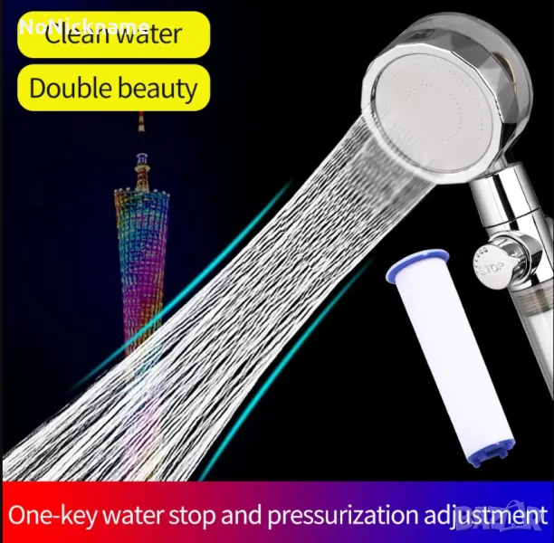 • Икономия на вода: Душ слушалката използва технология с микро дюзи, която прави изходните отвори по-малки и по-плътни, увеличавайки скоростта на водния поток, в същото време спестява до 40% вода в сравнение с обикновената душ глава.