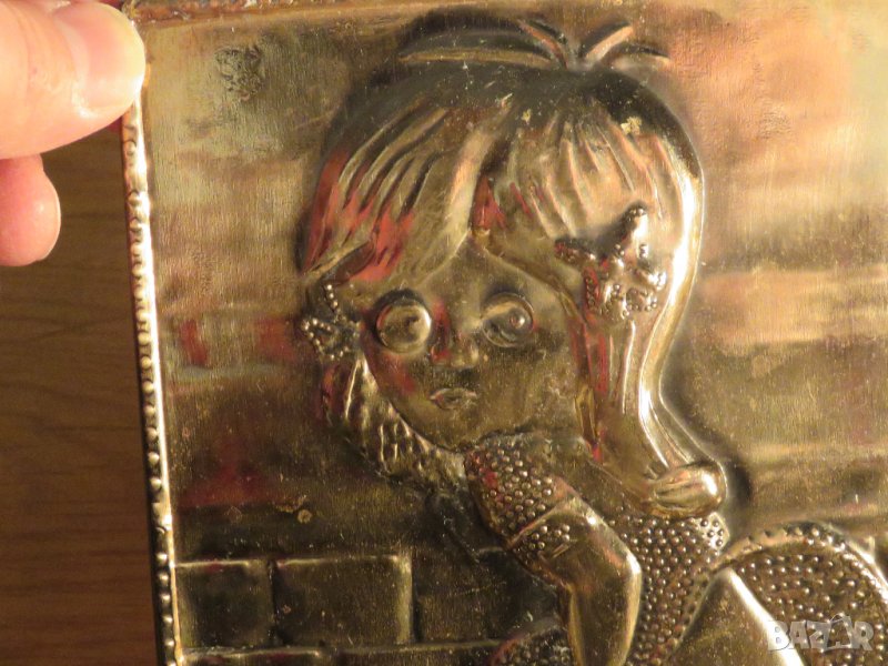 Стара медна табела момиченце WC тоалетна за заведение, бар, механа, декорация или за колекция .