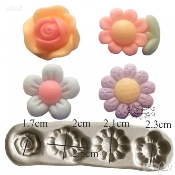4 цветя цвете роза маргаритка силиконов молд форма фондан украса торта сладки декор → Обява 35919208