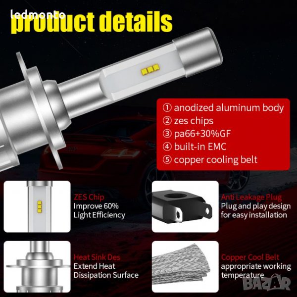 Лед крушки без бентилатор h7 h4 hb3 h1