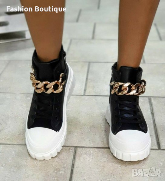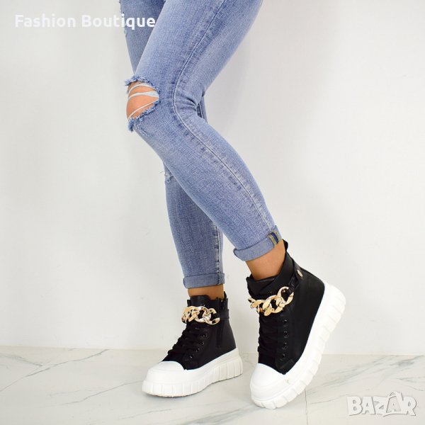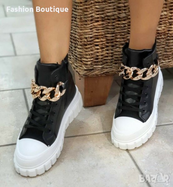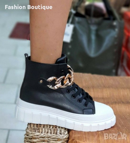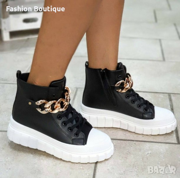 Дамски, кожени кецове в черно с бяла подметка 37/41 → Обява 35928041