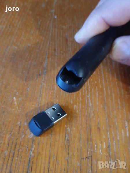 напълно заредена; Задният слот е удобен за съхранение на USB приемник.