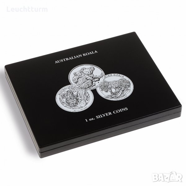 Елегантна черна презентационна кутия за 20 броя сребърни Koala монети (1 oz. издание) в оригинални капсули.