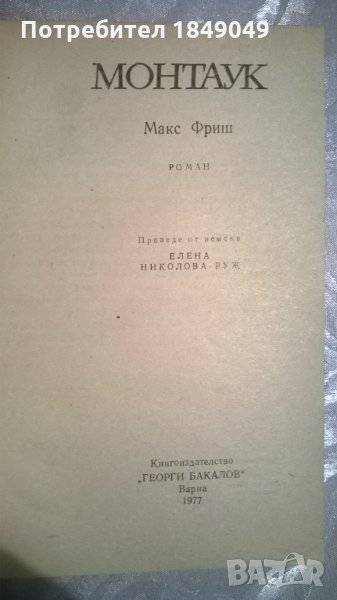Макс Фриш "Монтаук" - 0.50 лв./1977г.,меки корици/.