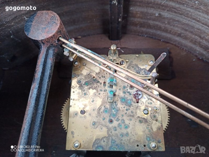 Арт находка , стар маховик, винтидж, стар немски , оригинален германски стенен часовник., античен, механичен, каминен