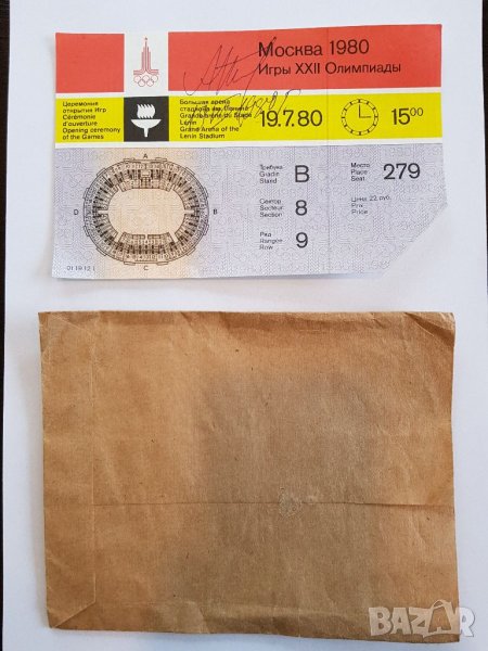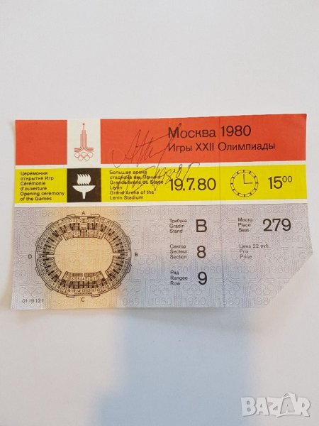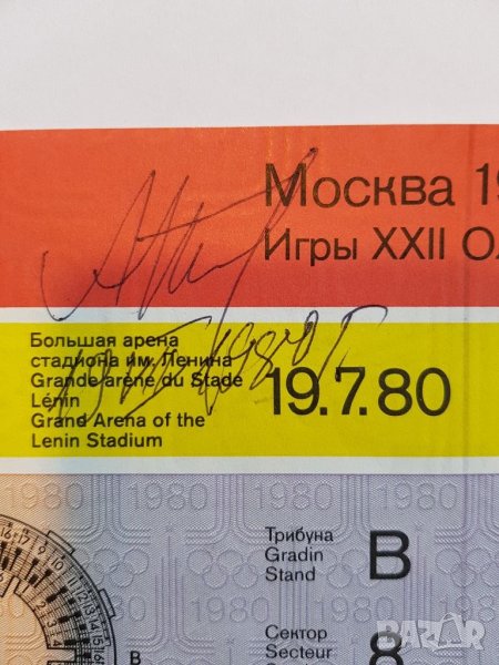Билет с автограф от олимпиадата в Москва през 1980 год.