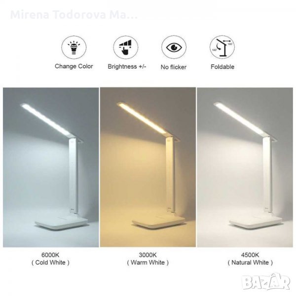Сгъваема лед лампа, защита на очите с тъч 3 цвята светлина